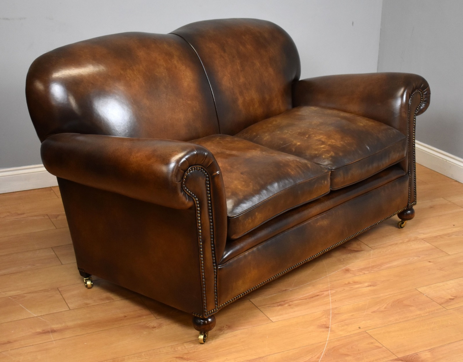 Antique Hand Dyed Brown Leather Sofa c.1900