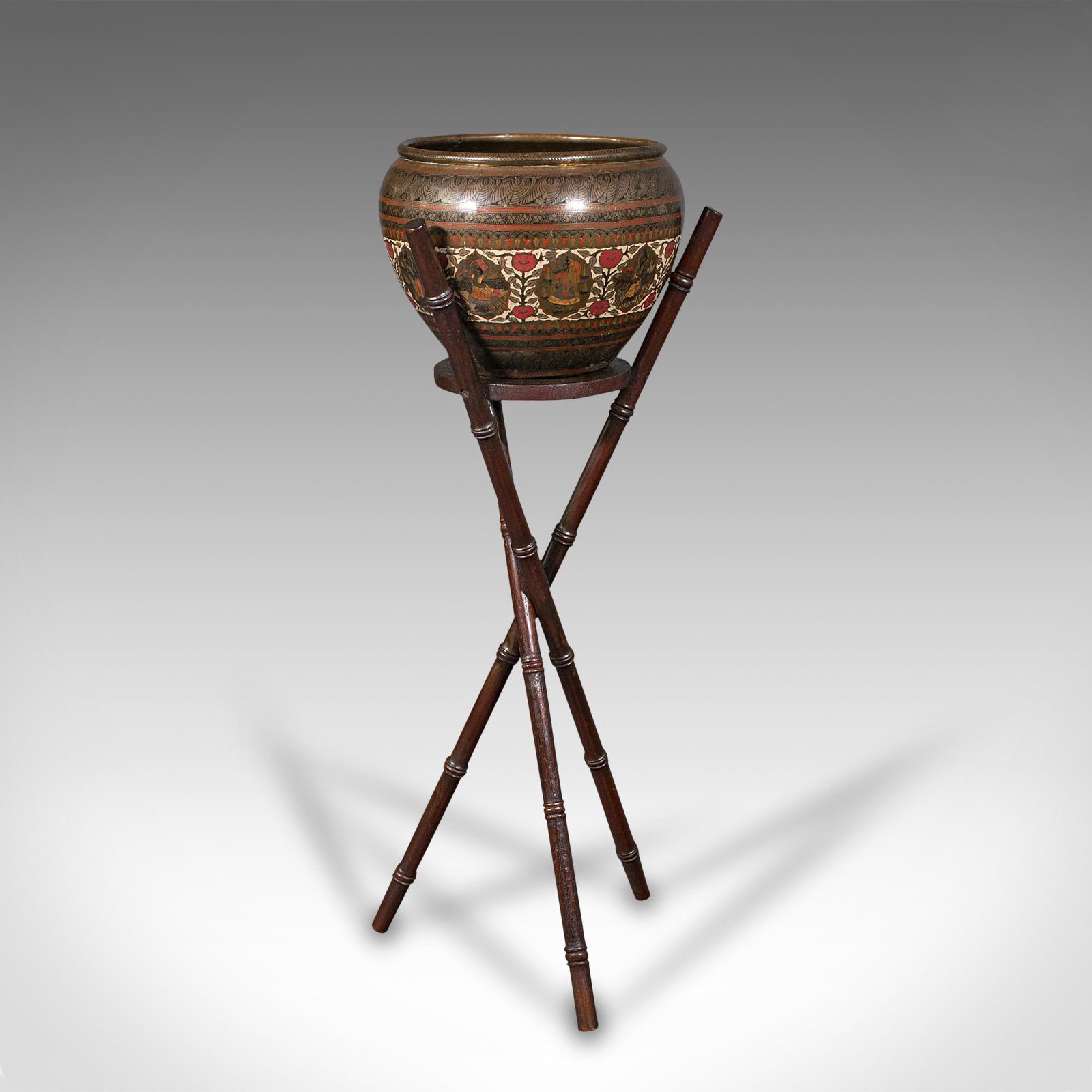Antique Hand Etched Planter Stand, Colonial Indian, Brass Jardiniere, Victorian (1 of 10)
