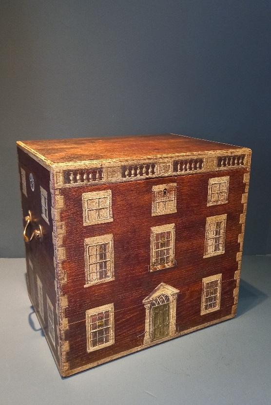 Antique Hand Painted Country House Box