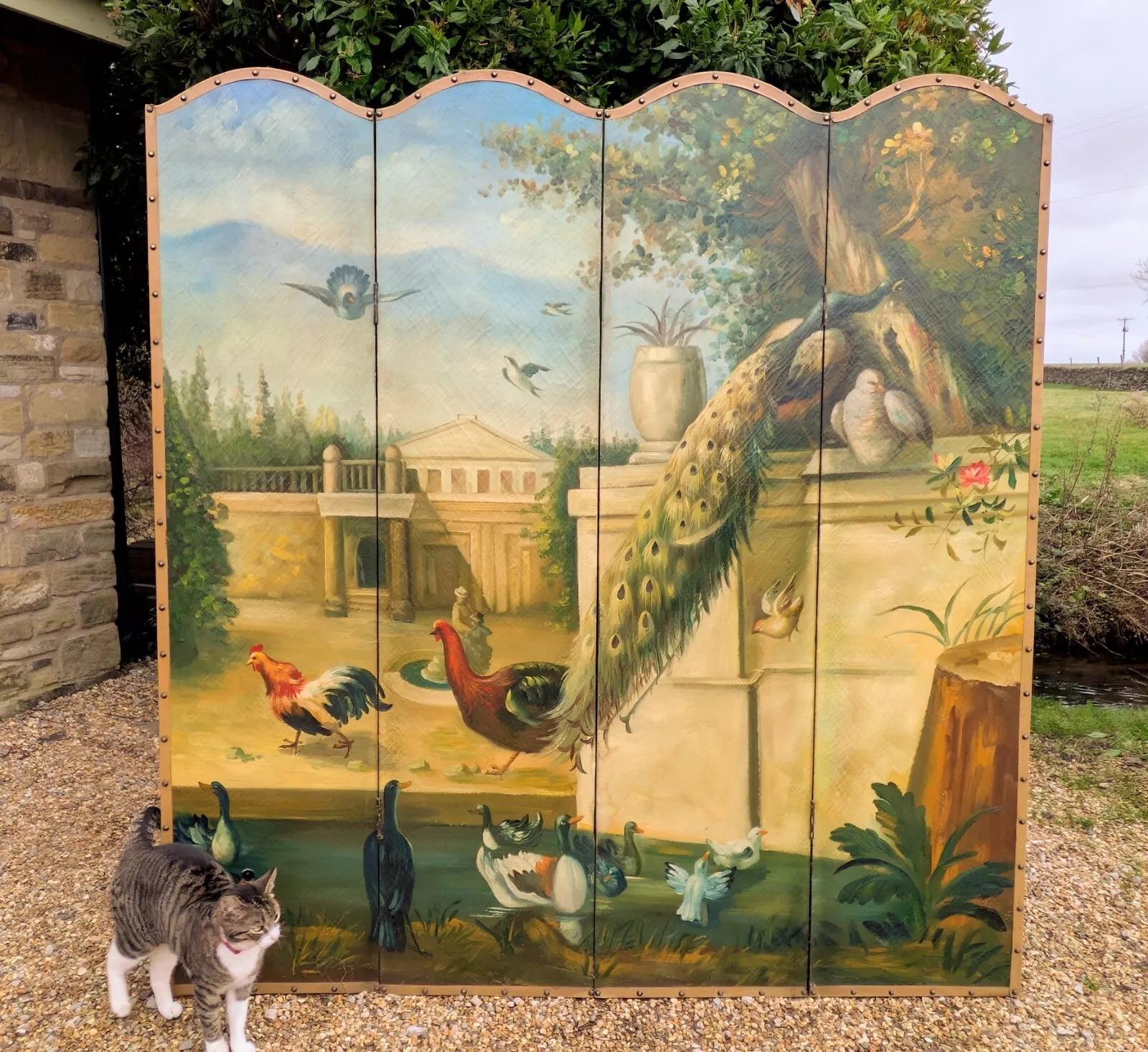Antique Hand Painted Dressing Screen Classical Garden Scene