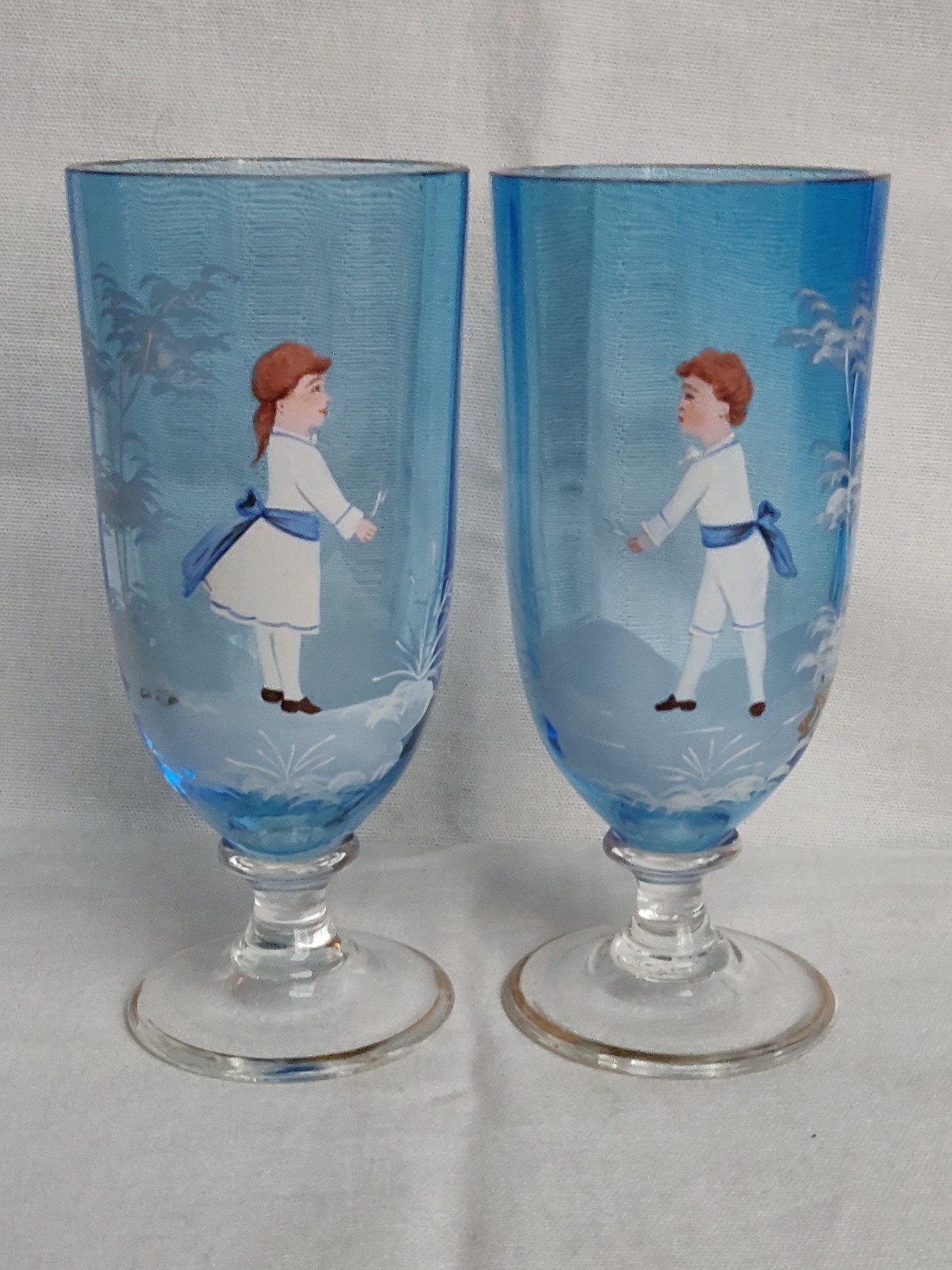 Antique Hand Painted Pair of Mary Gregory Wine Glasses c.1900s