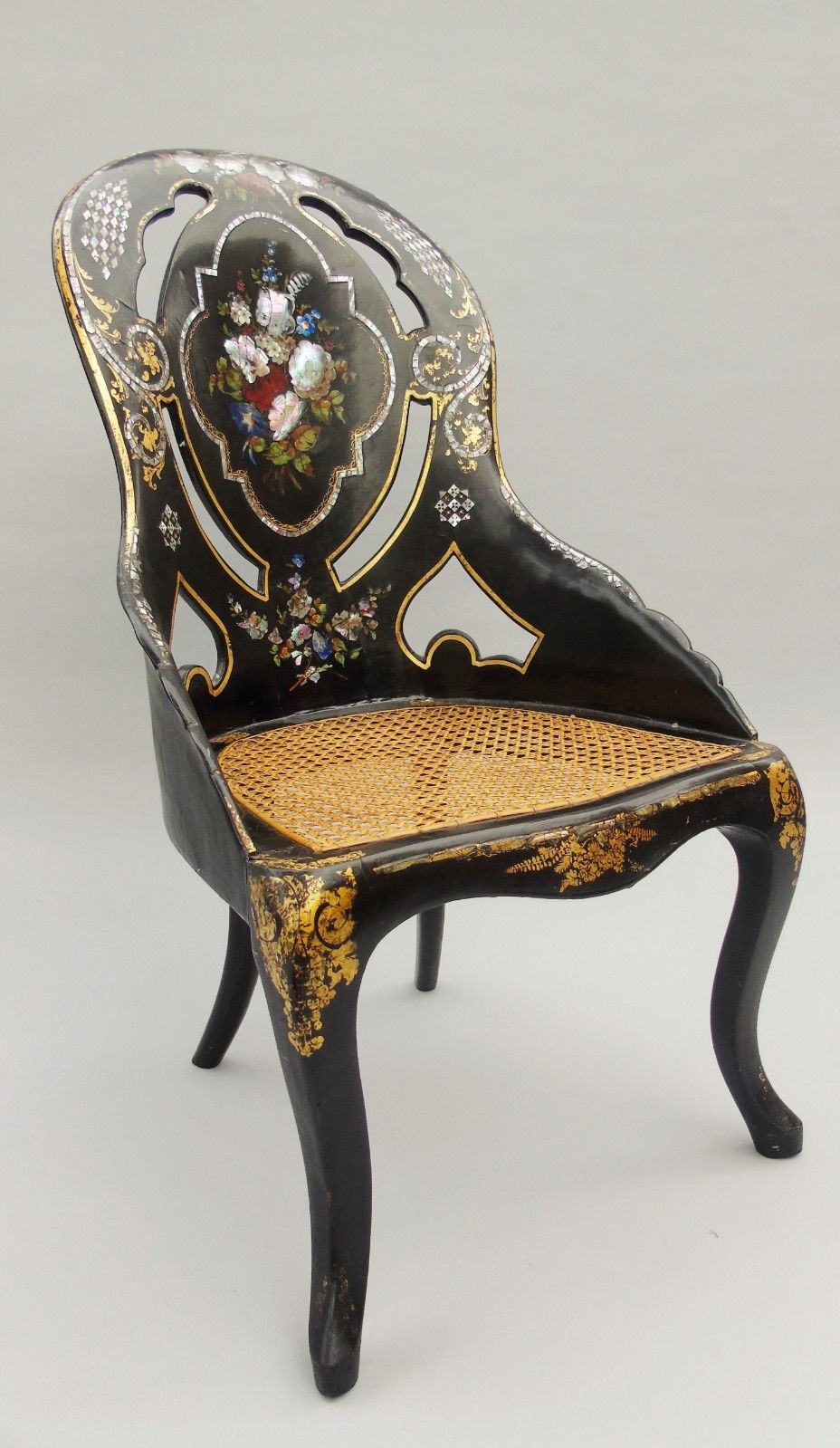 Antique Hand Painted Papier Mache & Mother of Pearl Chair 19th Century (1 of 1)