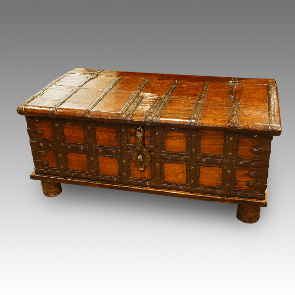 Antique Hardwood Iron Bound Merchants Chest (1 of 1)