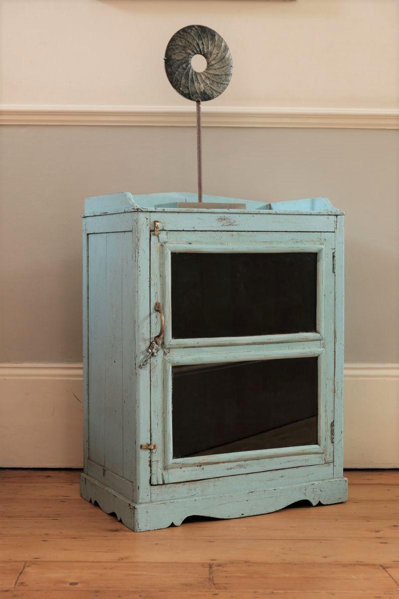 Antique Hardwood Painted Glass Fronted Cabinet in Light Blue
