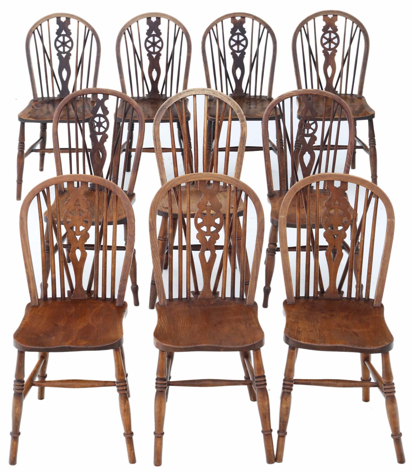 Antique Harlequin Set of 10 Ash Elm Beech Kitchen Dining Chairs 19th Century (1 of 1)