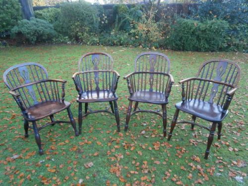 Antique Harlequin Set of 4 Ash & Elm Windsor Chairs c.1860
