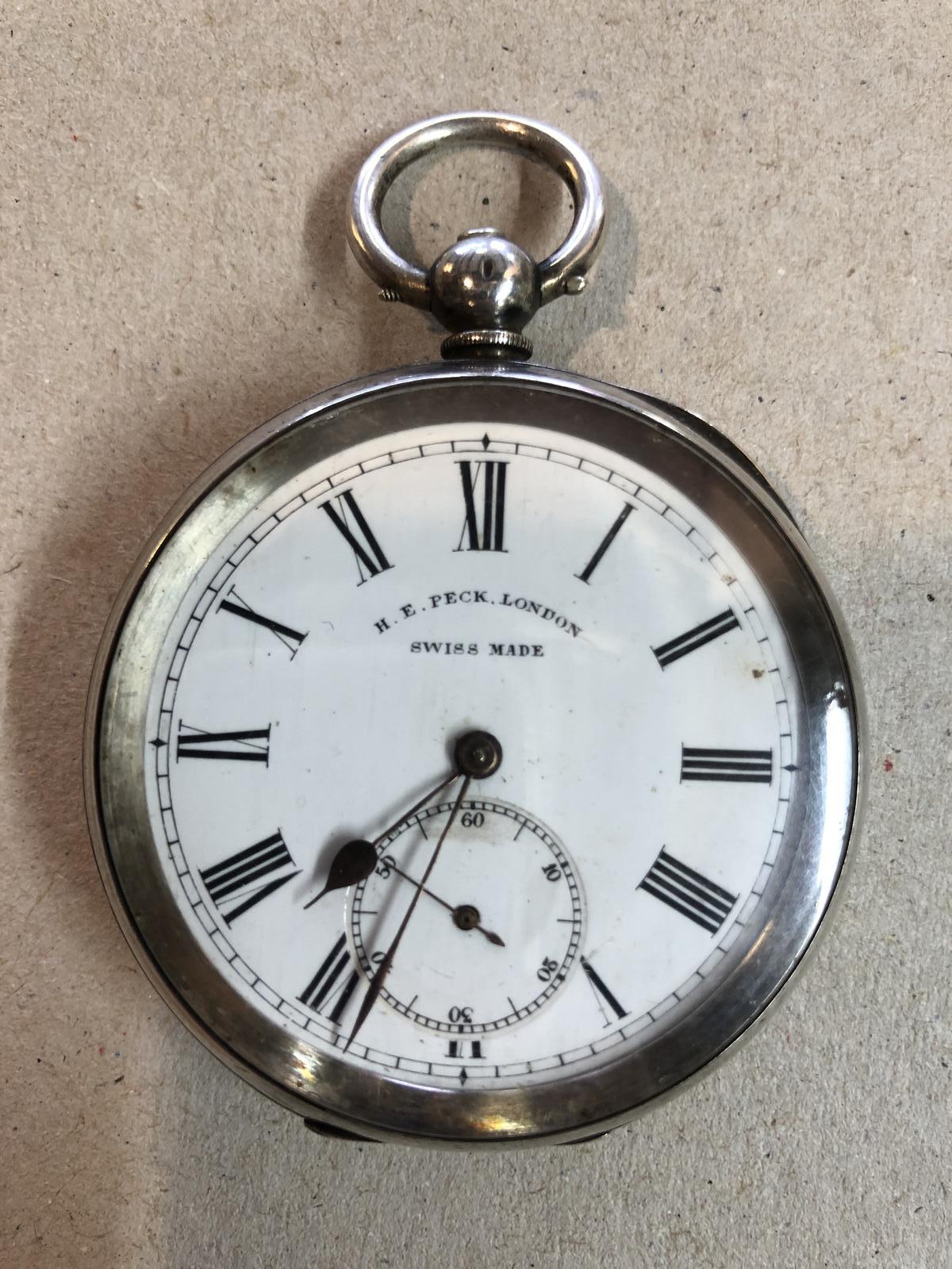 Antique H.E. Peck London Solid Silver Pocket Watch