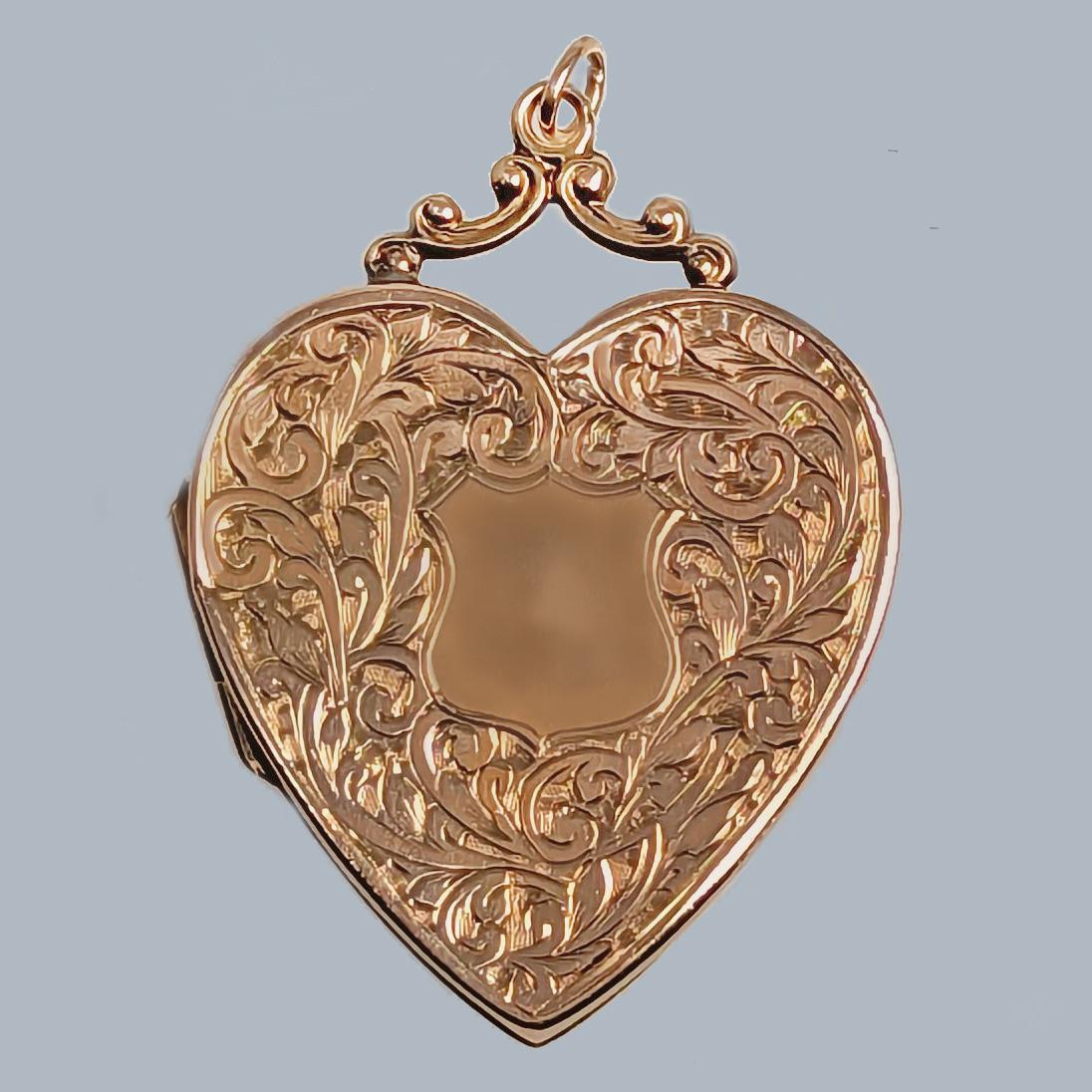 Antique Heart Floral Locket 9ct Gold Victorian Shield Hinged Photo Locket