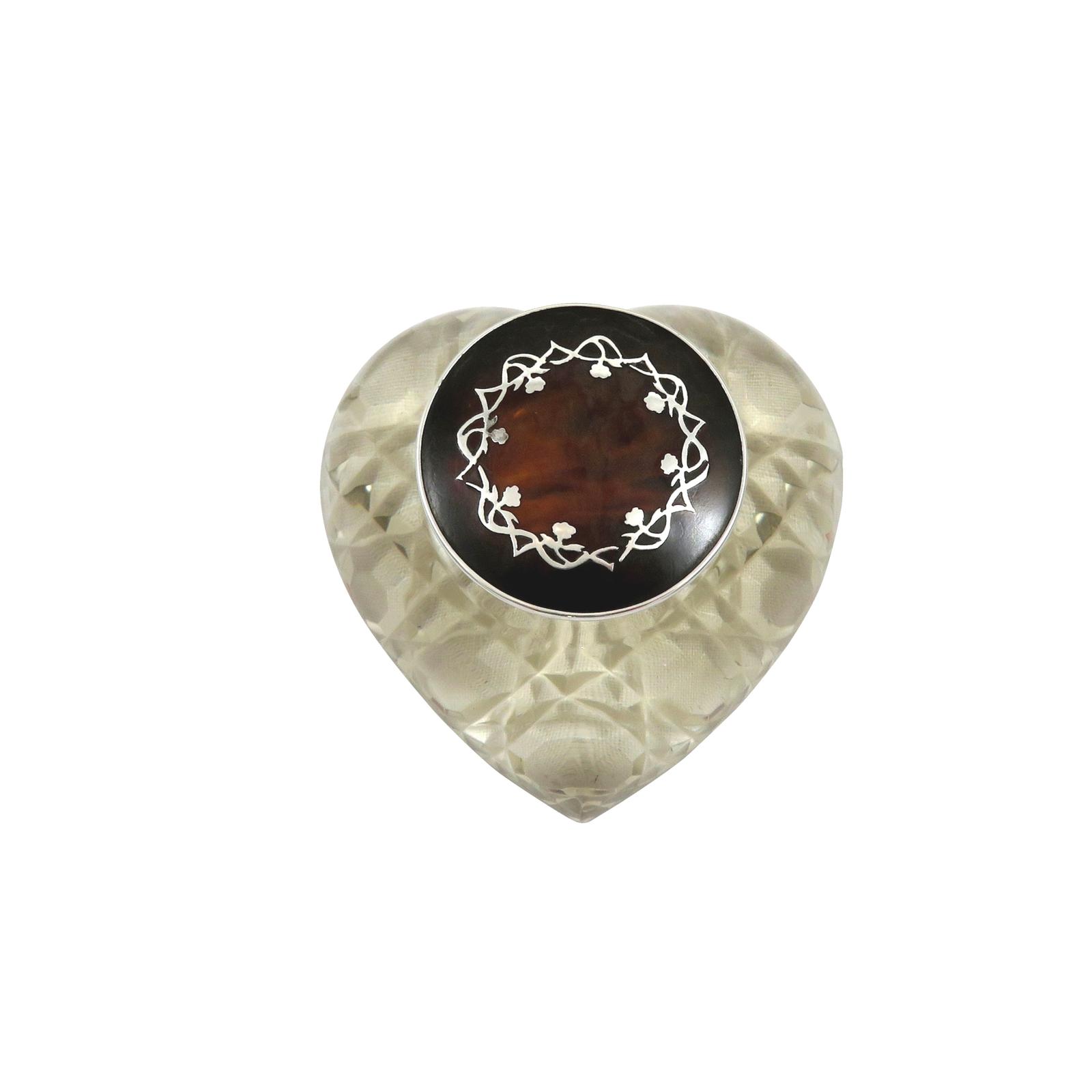 Antique Heart Shape Sterling Silver & Tortoiseshell Inkwell 1911