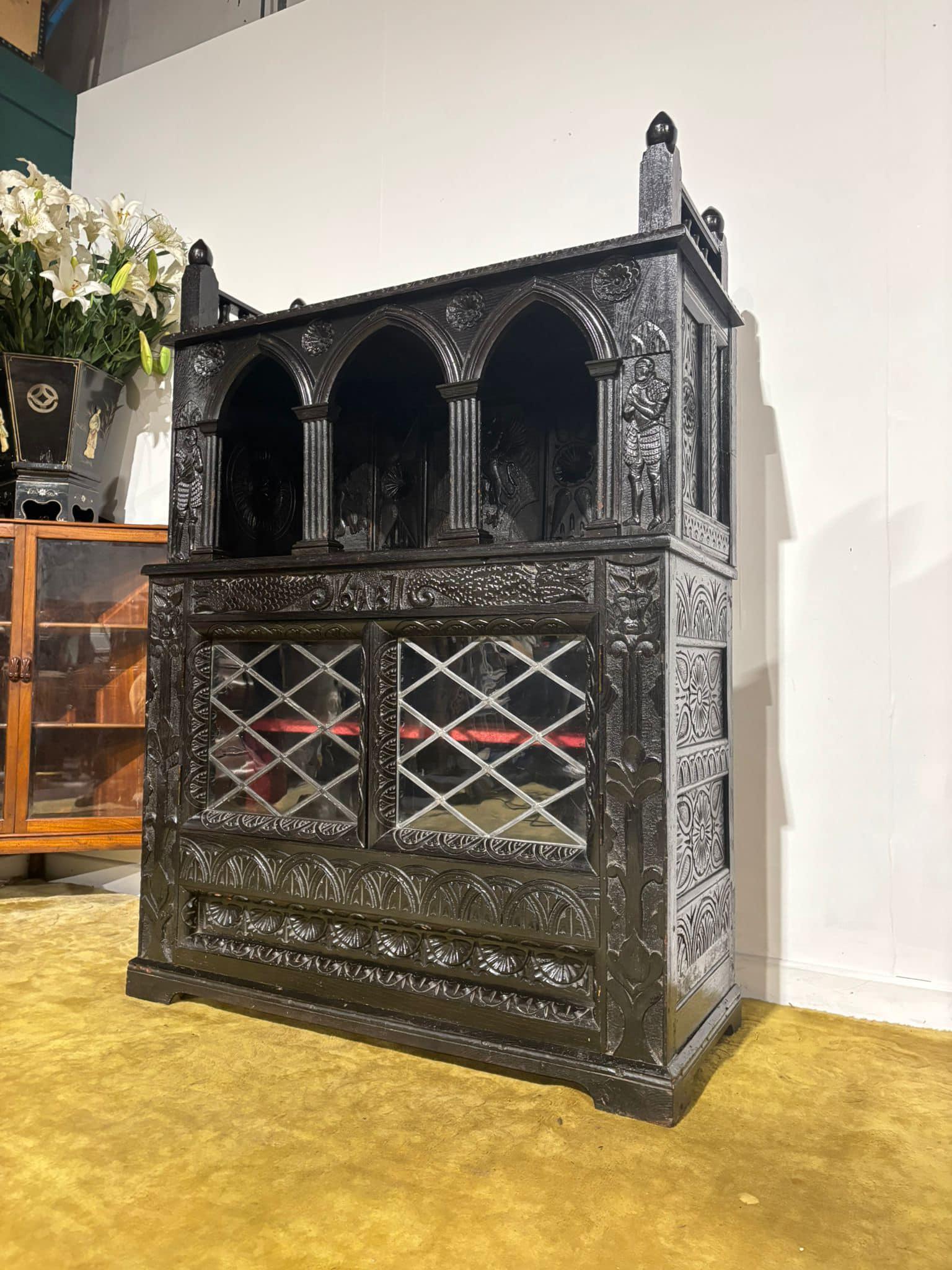 Antique Heavily Carved Dark Oak Court Cupboard Dated 1671