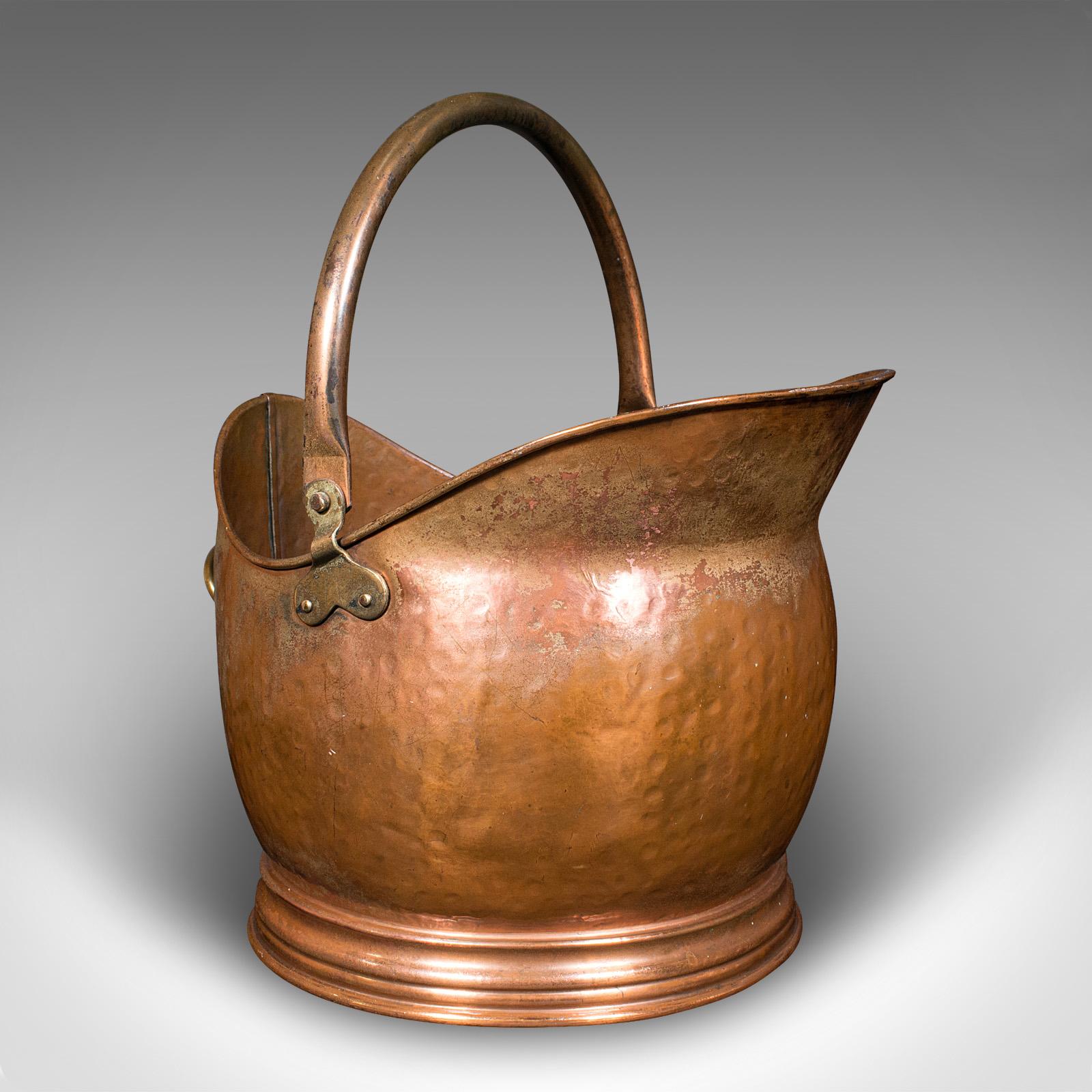 Antique Helmet Coal Scuttle, English, Copper, Fireside, Fuel Keeper, Victorian