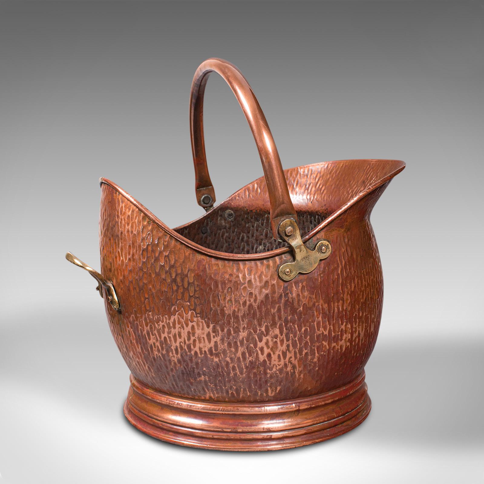 Antique Helmet Scuttle, Copper, Coal, Bucket, Fireside, Bin, Edwardian c.1910