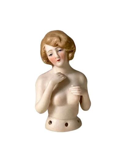 Antique Hertwig German Bisque Pin Cushion Half Doll