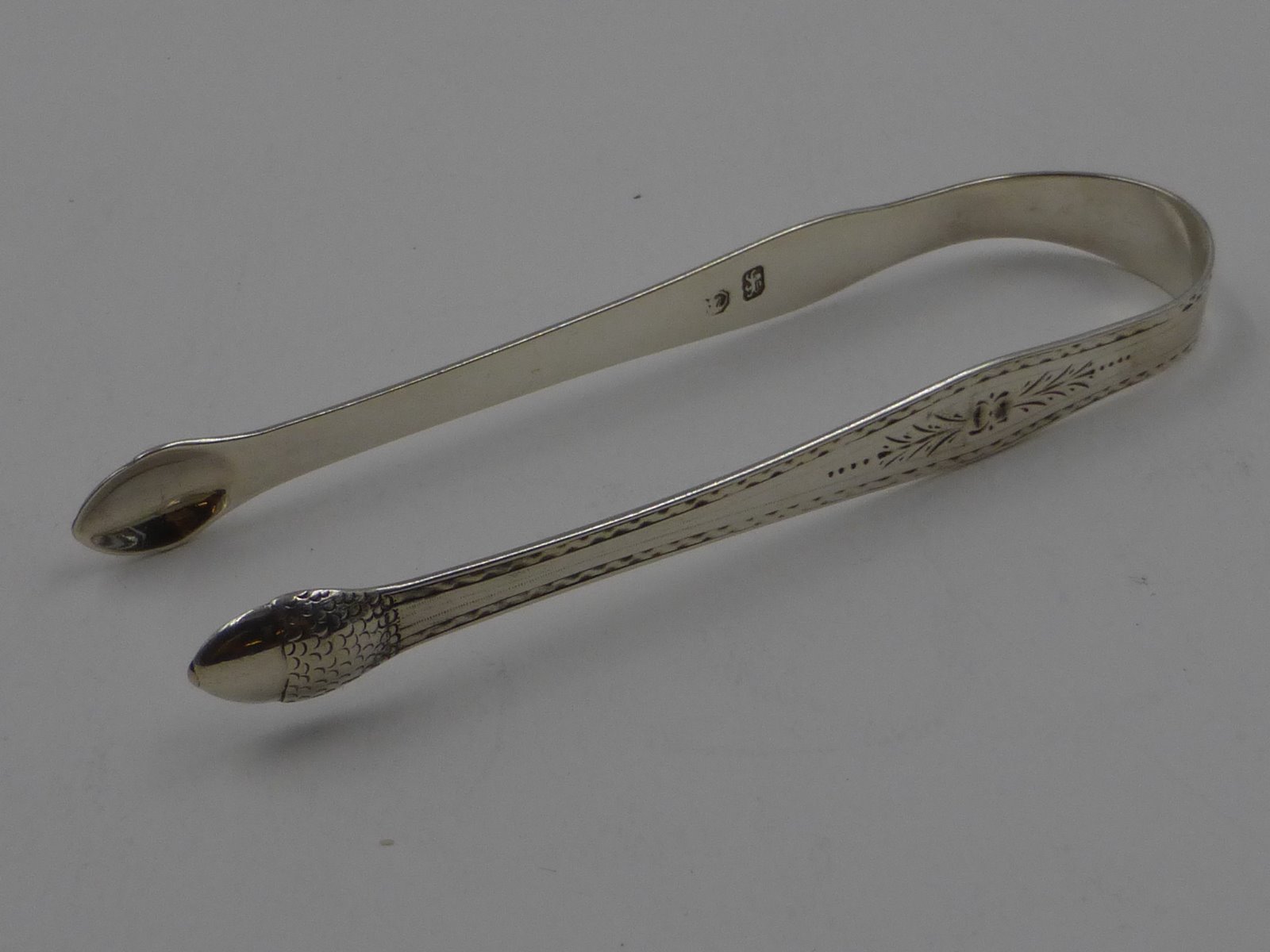 Antique Hester Bateman Silver Bright Cut Tongs c.1760