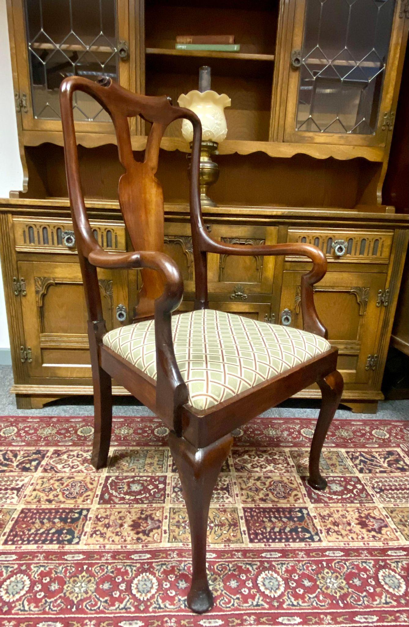 Antique Hickory Chair / Solid Mahogany Traditional Style Splat Back Dining Armchairs - Early 20th Century