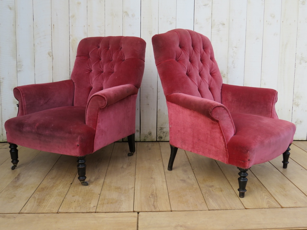 Antique His & Hers Napoleon III Chairs for re-upholstery