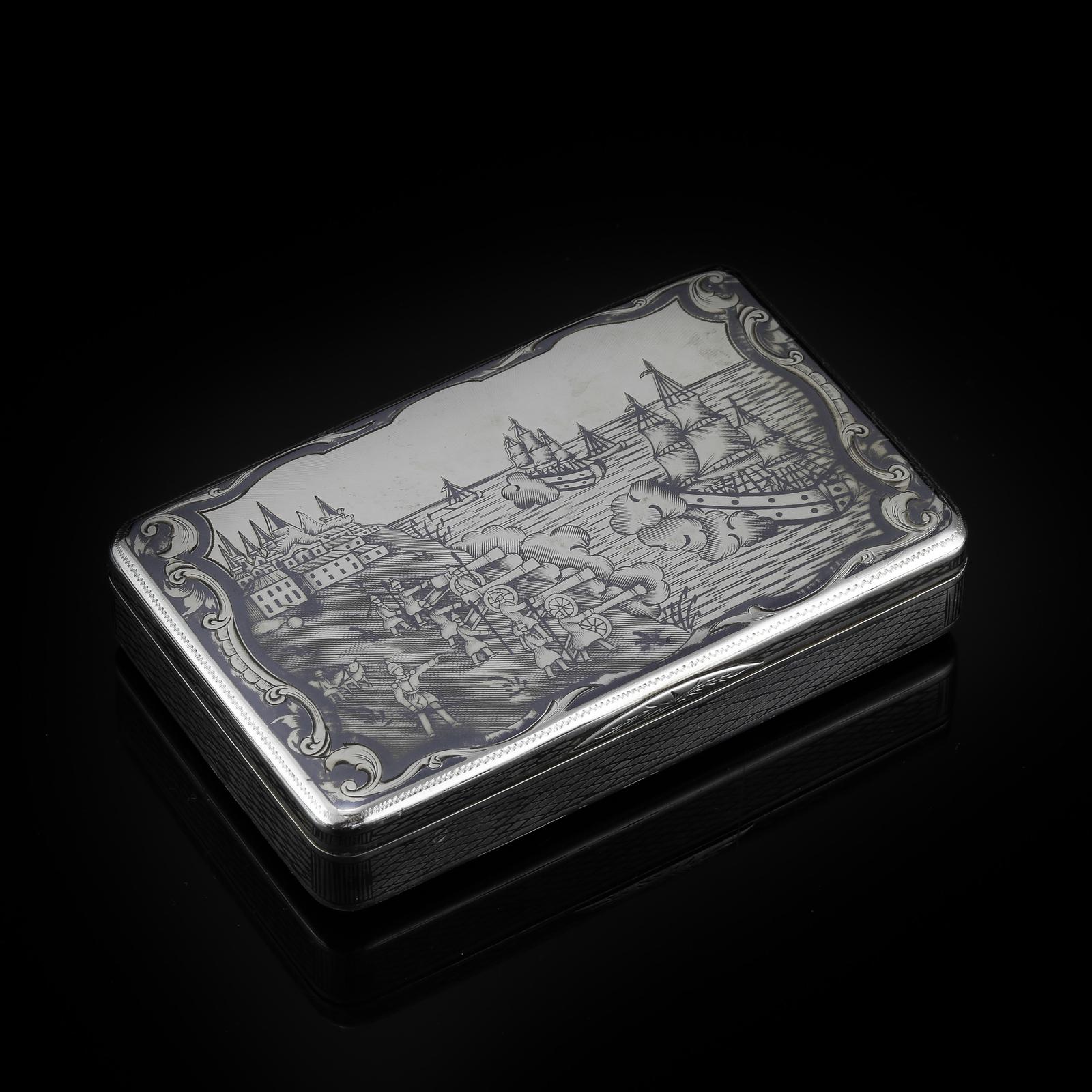 Antique Imperial Russian Silver Niello Snuff Box Naval Ship Battle Scene - T.Botkov 1855 (1 of 16)