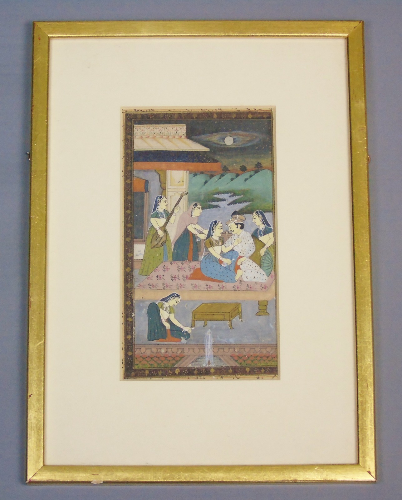 Antique Indian Gouache Painting Figures on a Terrace 19th Century (1 of 4)
