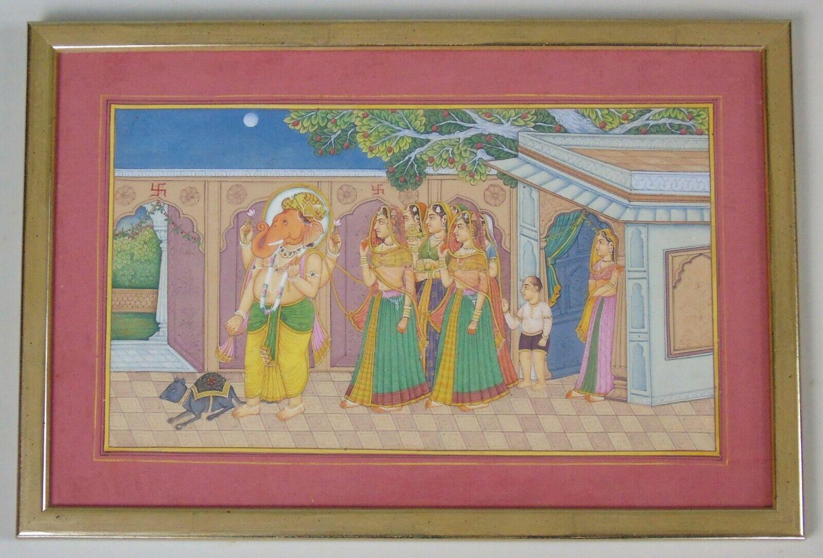 Antique Indian Gouache Painting Rajasthan 19th Century Ganesha