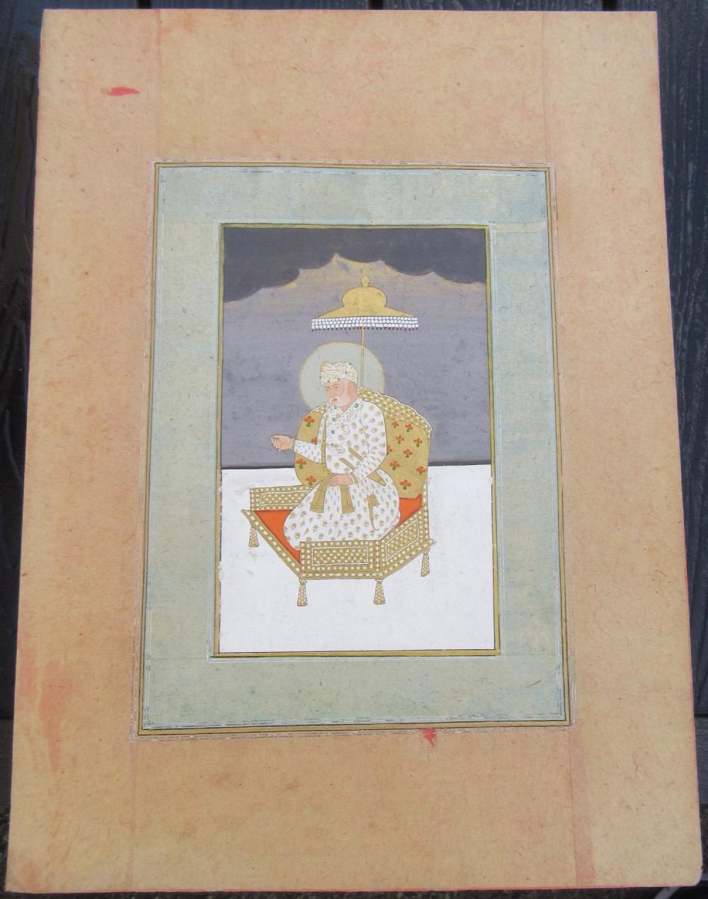 Antique Indian Miniature Painting. Akbar The Great Enthroned. Mughal,india 1790-1800