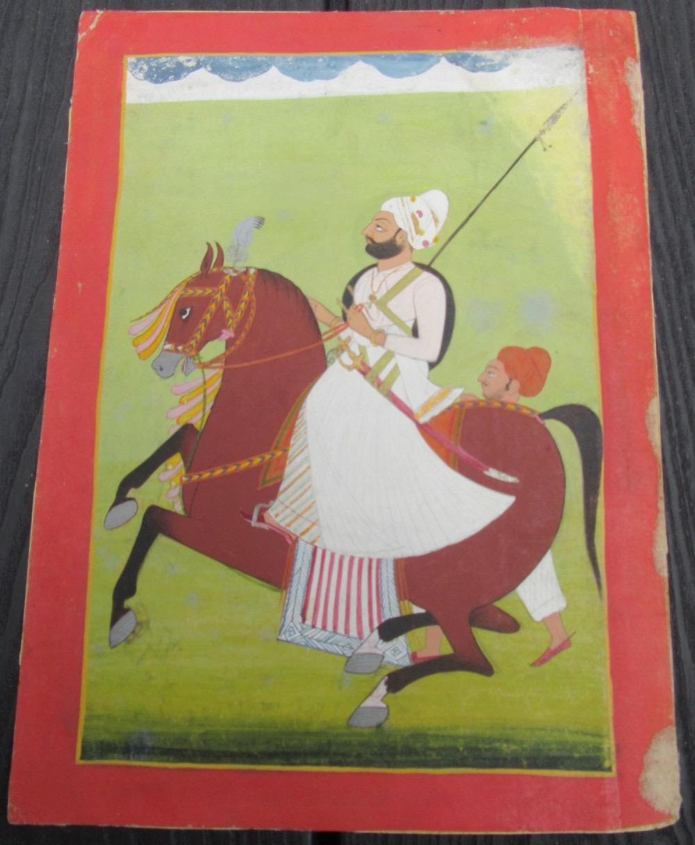 Antique Indian Miniature Painting - Equestrian Portrait Maharaja Sardar Singh (ruled 1838-1842)