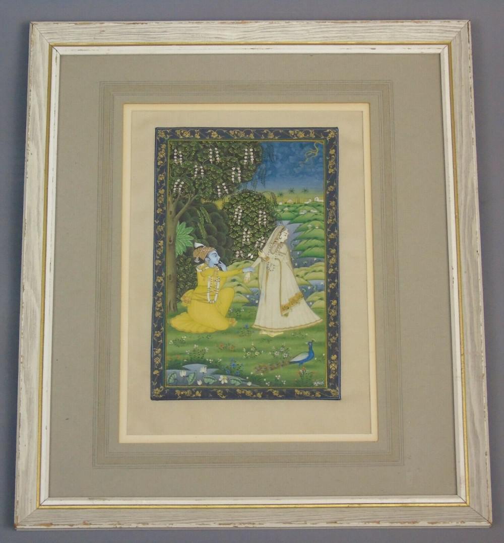 Antique Indian Painting on Silk Kangra School Krishna