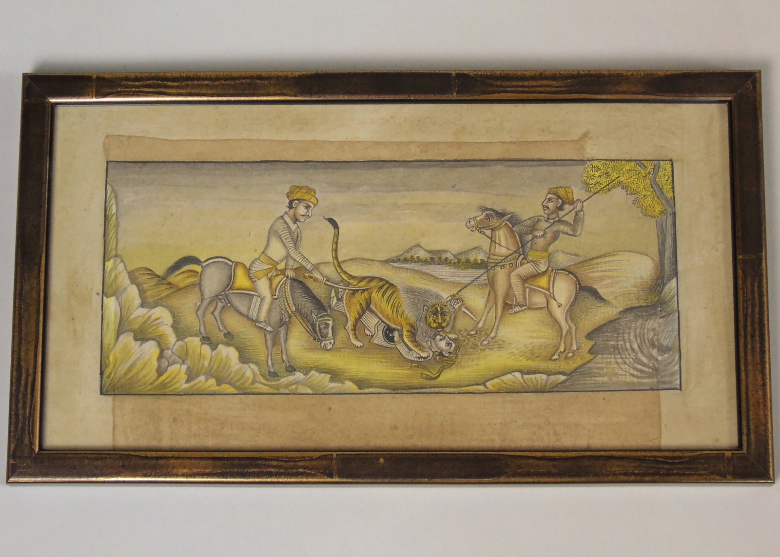 Antique Indian Watercolour Tiger Hunt (1 of 6)