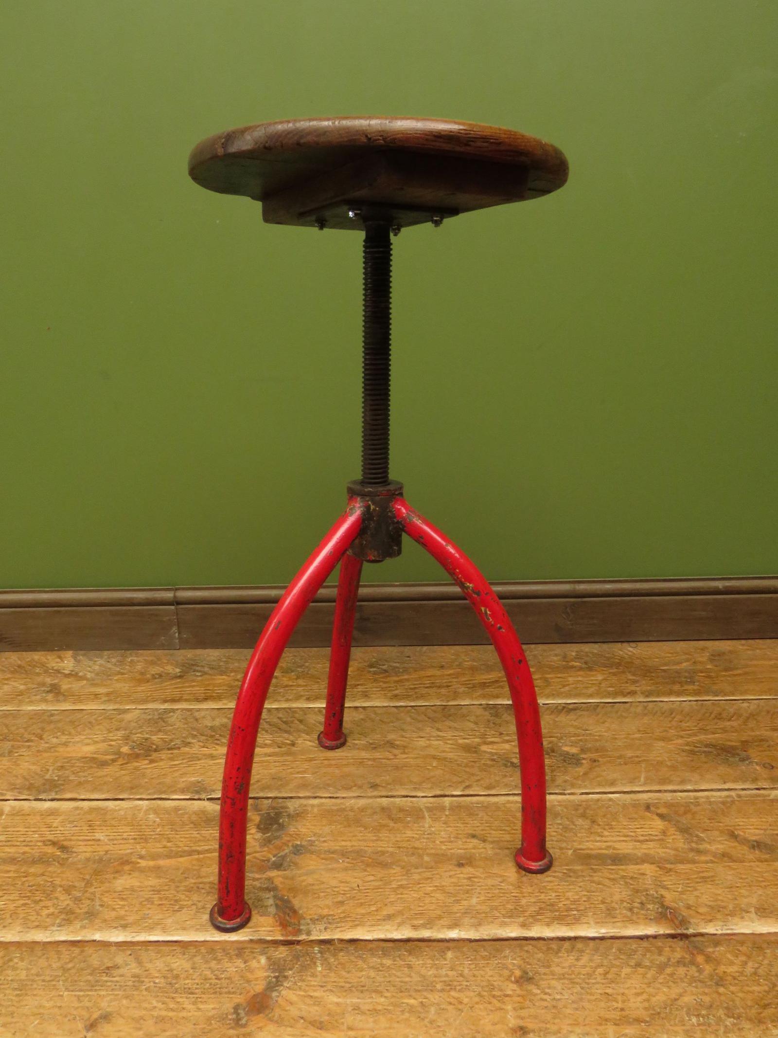 Antique Industrial Engineers, Machinists Stool, Red metal base, early 20th Century