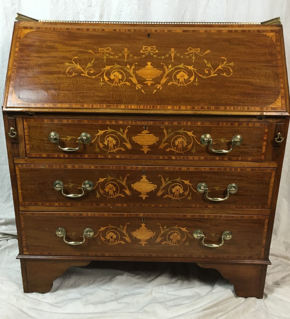 Antique Inlaid Bureau with Brass Gallery (1 of 1)