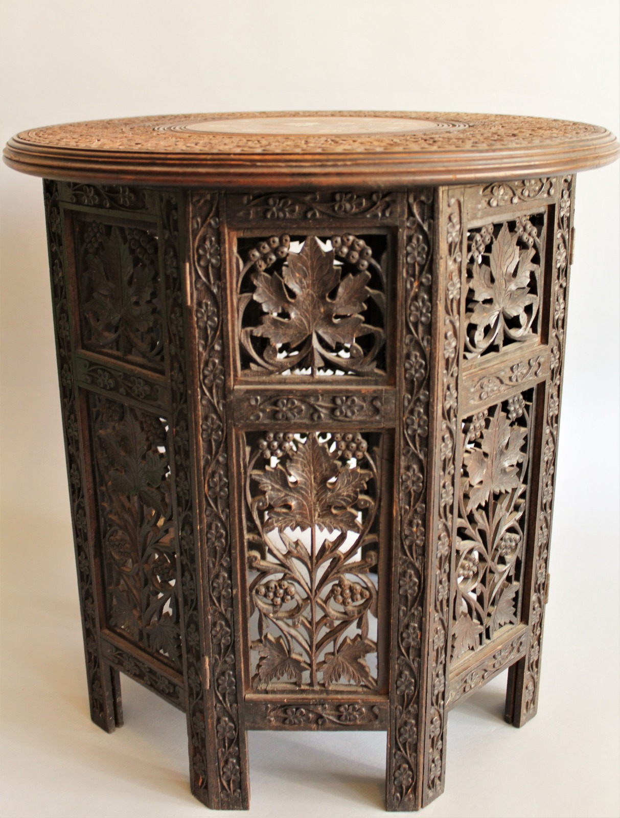 Antique Inlaid & Carved Indian Hardwood Table c.1900 (1 of 1)