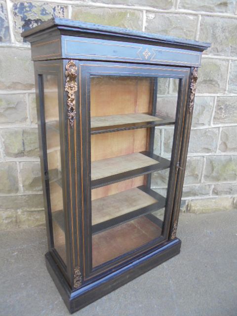 Antique Inlaid Ebonised Display Vitrine Cabinet