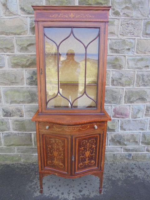 Antique Inlaid Mahogany Bookcase on Cabinet / Display Cabinet c.1901