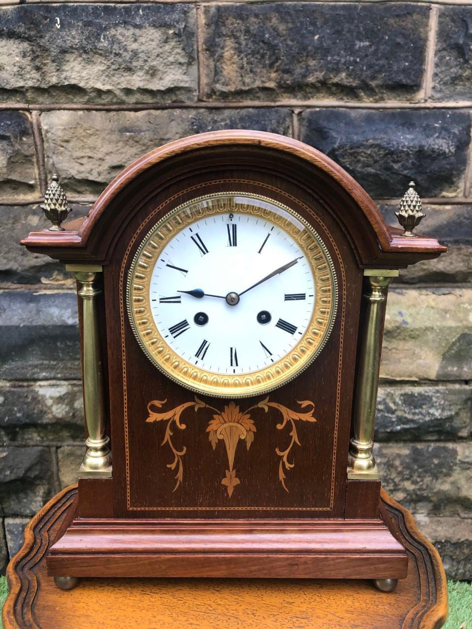 Antique Inlaid Mahogany Bracket Mantle Clock