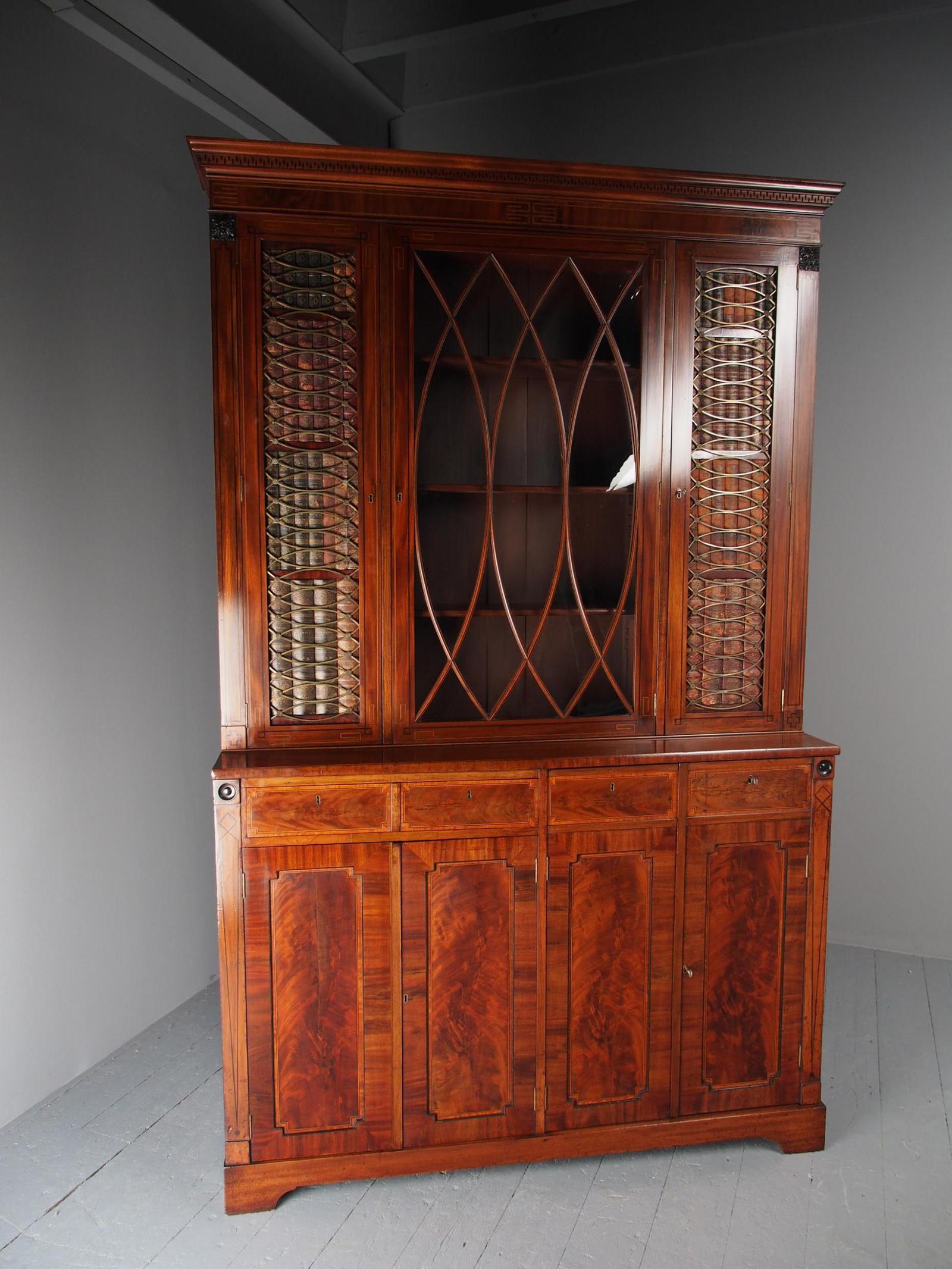 Antique Inlaid Mahogany Cabinet Bookcase