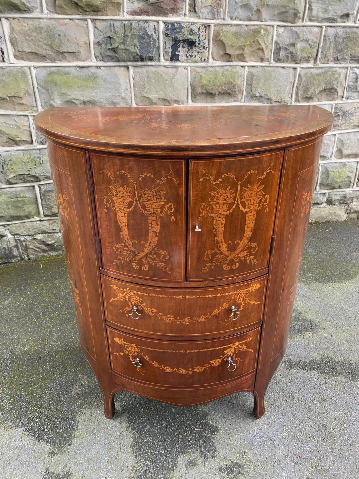 Antique Inlaid Mahogany Demi Lune Side Cabinet