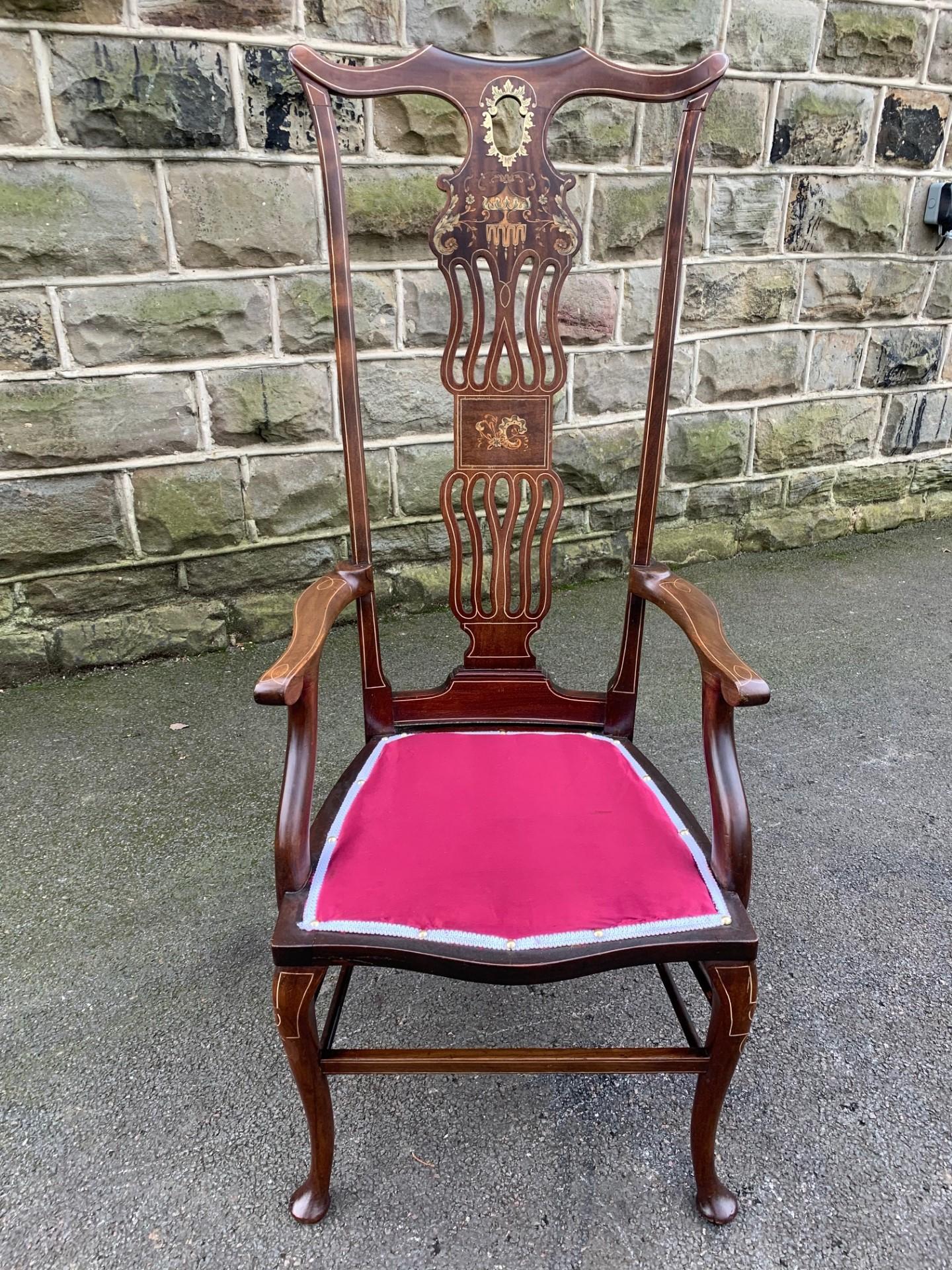 Antique Inlaid Mahogany High Back Armchair