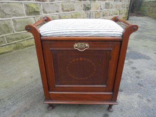 Antique Inlaid Mahogany Music Stool / Piano Stool c.1910