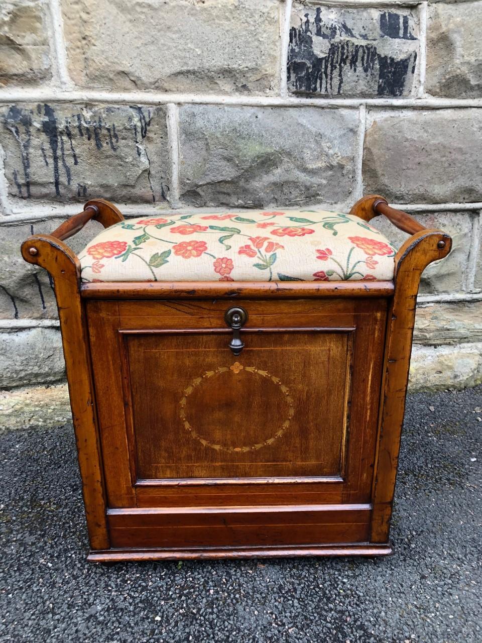 Antique Inlaid Mahogany Piano Stool