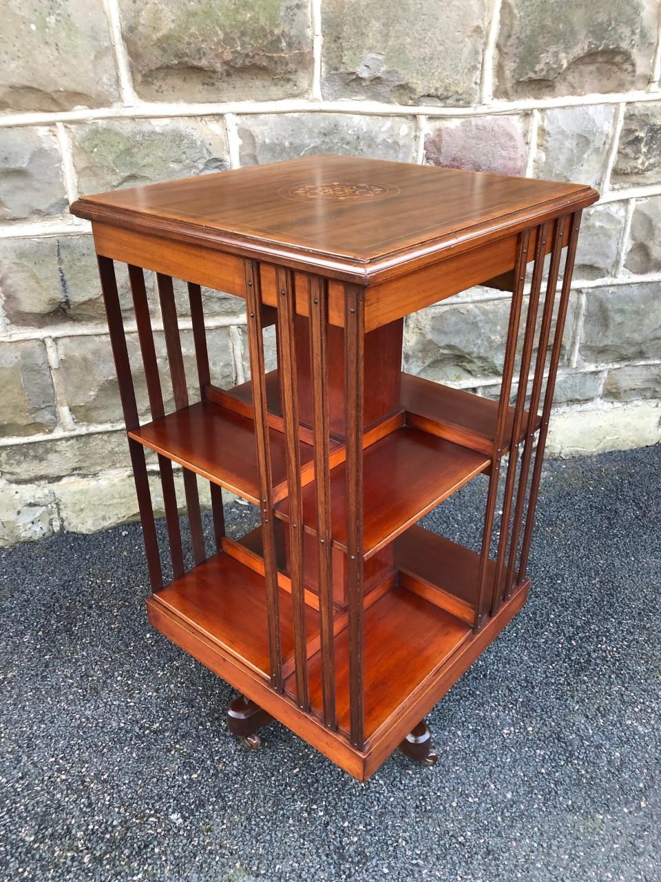 Antique Inlaid Mahogany Revolving Library Bookcase (1 of 8)