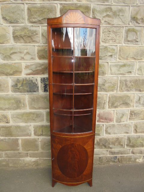 Antique Inlaid Mahogany Slim Corner Cabinet Bookcase c.1901 (1 of 1)