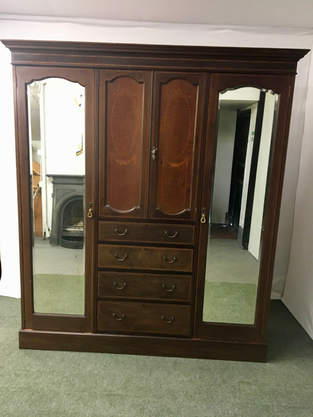 Antique Inlaid Mirror Door Wardrobe - Compactum Chest of 4 Drawers