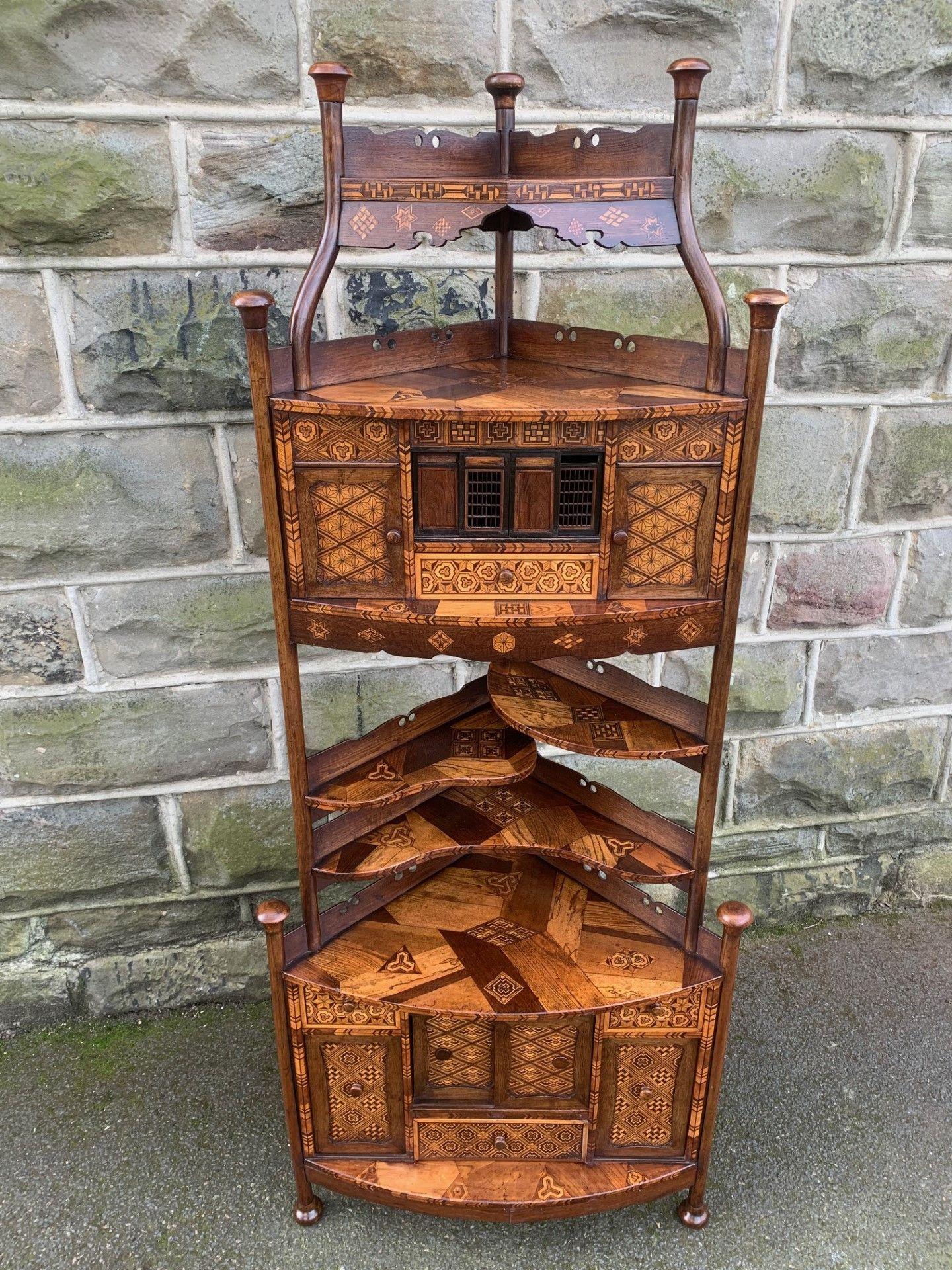 Antique Inlaid Oriental Japanese Corner Whatnot