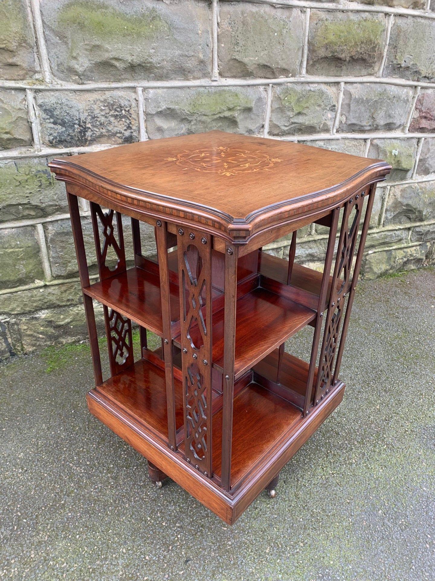 Antique Inlaid Rosewood Revolving Library Bookcase (1 of 11)