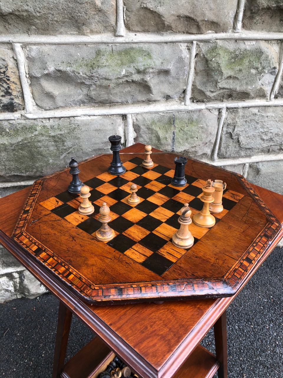 Antique Inlaid Walnut Chess Board c.1860