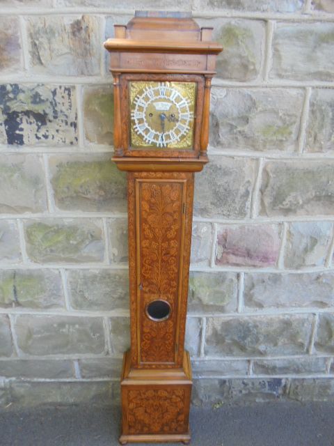 Antique Inlaid Walnut & Marquerty Small Longcase Clock c.1900