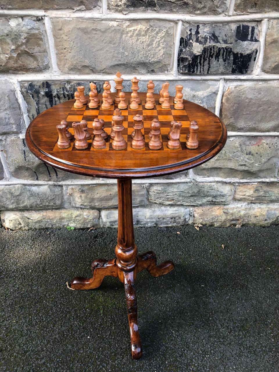 Antique Inlaid Walnut Tripod Games Table
