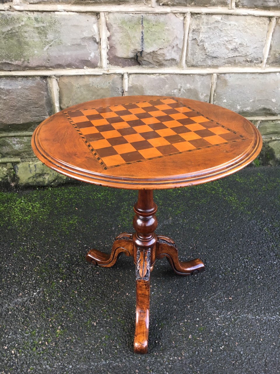 Antique Inlaid Walnut Tripod Games Table c.1860