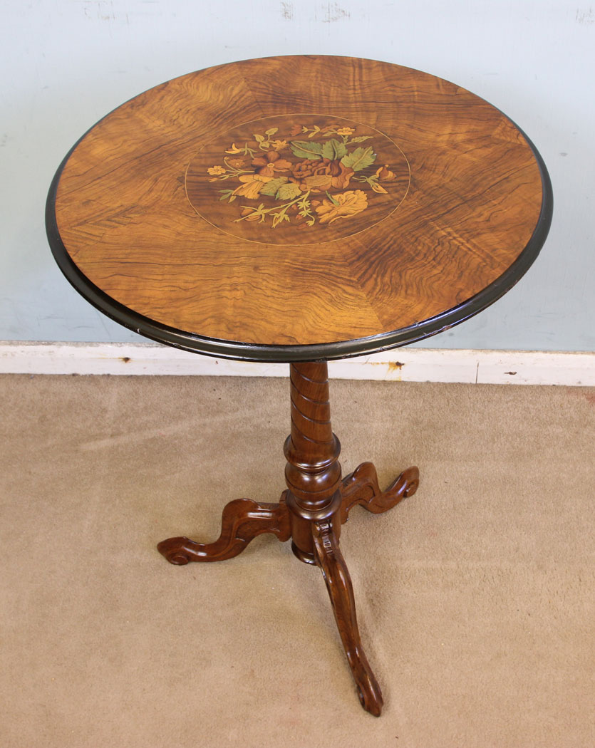 Antique Inlaid Walnut Tripod Occasional Table (1 of 9)