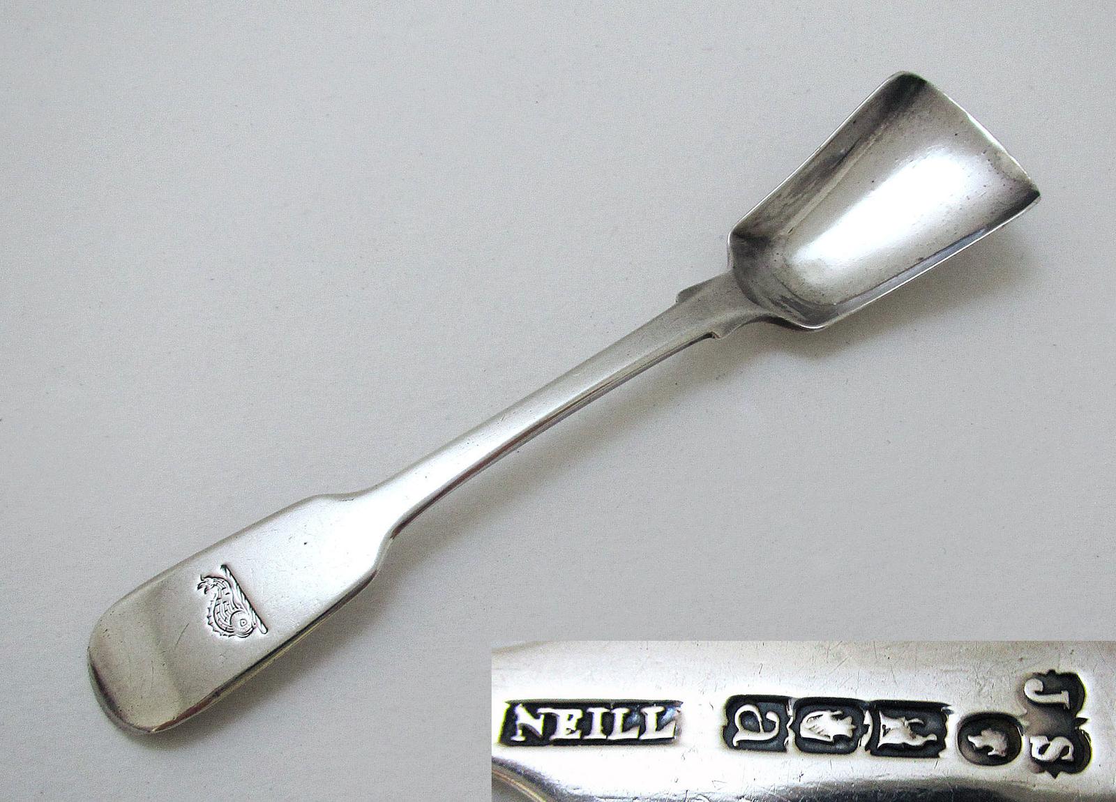 Antique Irish 1846 Belfast Neill Victorian Solid Sterling Silver Salt Mustard Pot Condiment Shovel Spoon, John Smyth