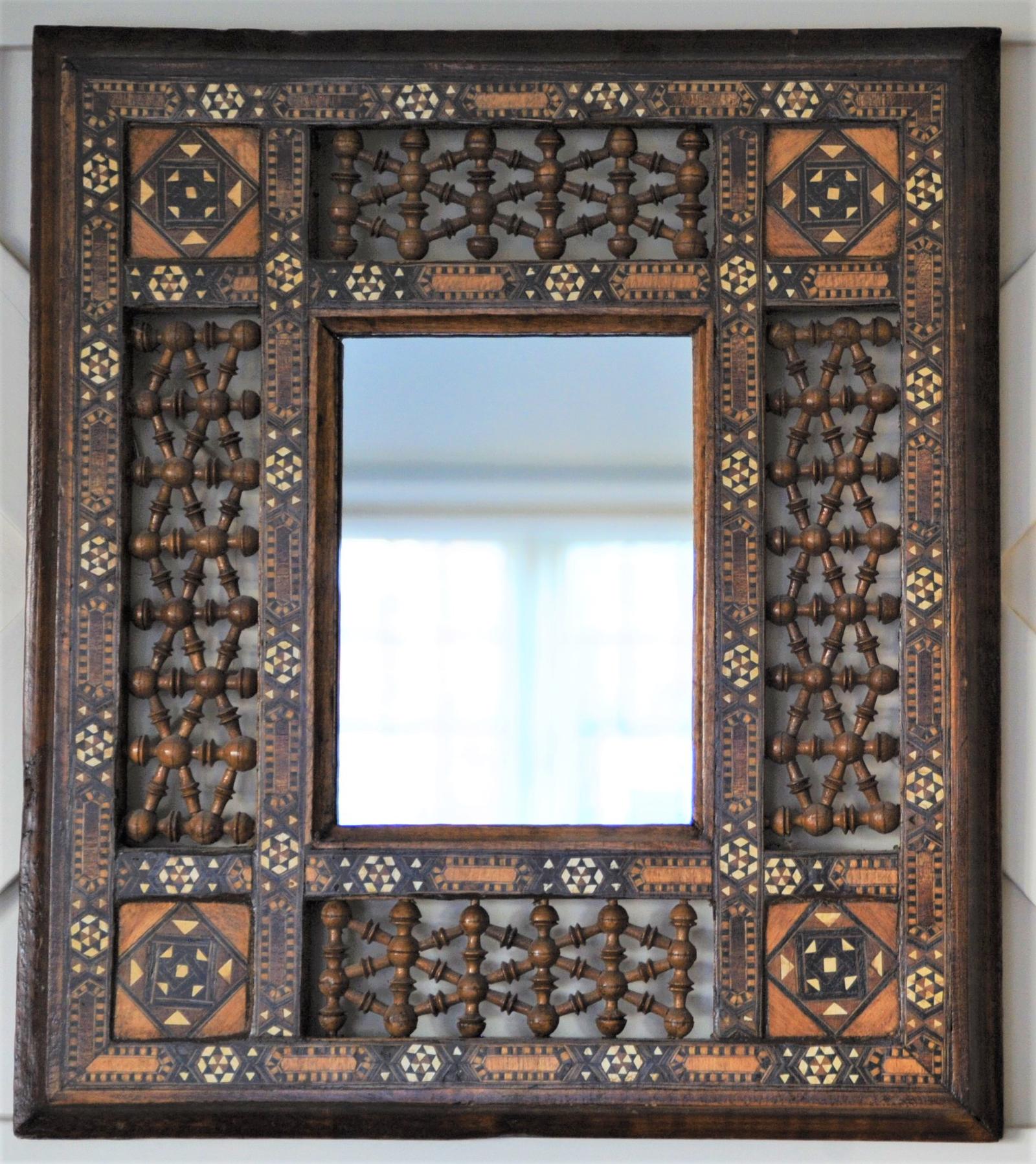 Antique Islamic Middle East Marquetry Framed Mirror